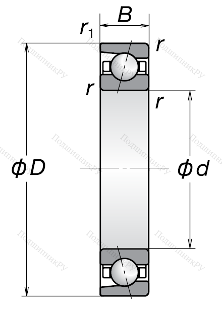 Однорядный шариковый подшипник 7208 BW