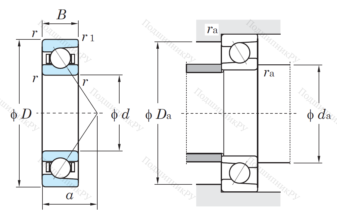 Однорядный шариковый подшипник 7312 BG (66312 ГОСТ)