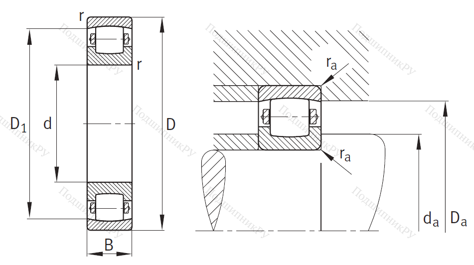 - двухрядный подшипник воспринимает комбинированные нагрузки (двухсторонние осевые и радиальную).
