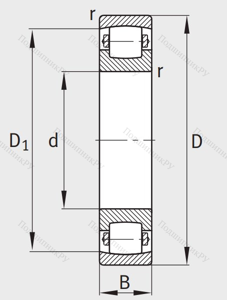 Двухрядный имеет единую дорожку качения на внешней обойме и две раздельных, на внутренней. В зависимости от типа может иметь различное расположение роликов: поочерёдно с каждой из сторон (лесенкой) или один против другого. Последние имеют грузоподъёмность, превышающую на 30% первую версию.