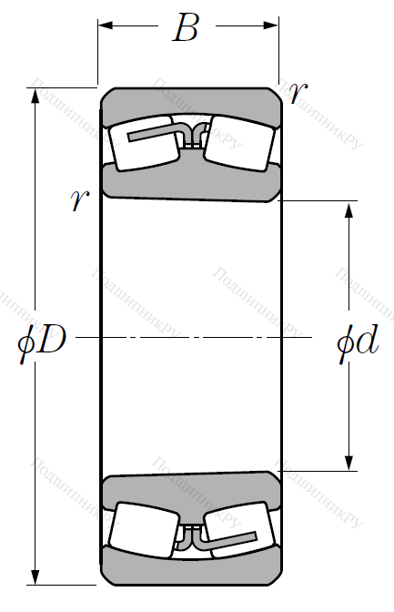 Сферический роликовый подшипник с конической посадкой на вал 22213 BK (EAK) D 1