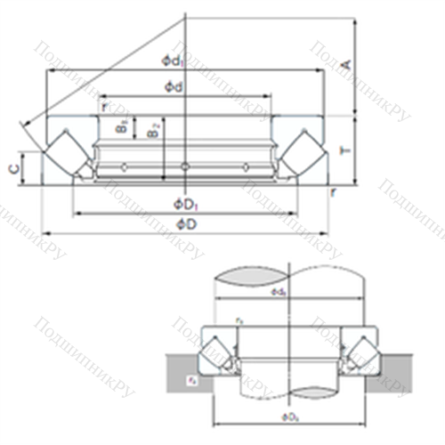 - Обладает более широкой зоной передачи усилий в сравнении с шарикоподшипниковыми аналогами, однако предназначен исключительно для работы с малыми скоростями вращения.
