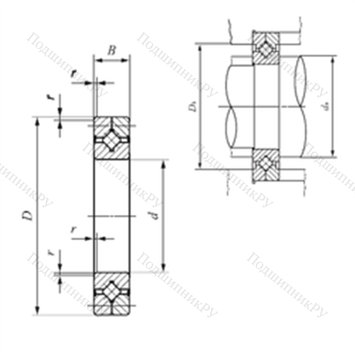 - Обладает более широкой зоной передачи усилий в сравнении с шарикоподшипниковыми аналогами, однако предназначен исключительно для работы с малыми скоростями вращения.