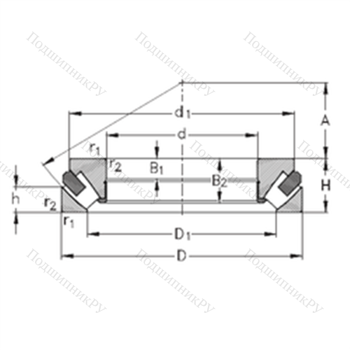 - Обладает более широкой зоной передачи усилий в сравнении с шарикоподшипниковыми аналогами, однако предназначен исключительно для работы с малыми скоростями вращения.