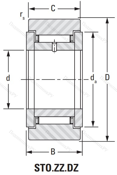 В конструкции Подшипник STO 35 ZZ DZ полностью отсутствуют уплотняющие элементы, поэтому деталь выполнена в открытом варианте и является разъемной. Внутренняя фланцевая шина может как присутствовать, так и отсутствовать, а внешняя утолщена для дополнительной устойчивости и прочности. Роликовый посадочный диаметр – 35 и до 66 мм. Наружная обойма и сепаратор могут быть установлены отдельно, наружный диаметр детали 72 мм.