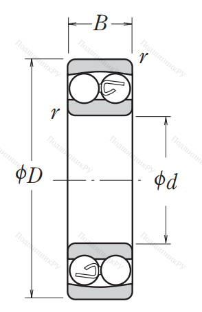 Конструкции этого типа, производящиеся фирмами FAG, KOYO, NSK, SKF, SNR, имеют два ряда шарикоподшипников, внешнюю выпуклую шину и внутреннюю обойму, в которой находится монтажное цилиндрическое отверстие. Воспринимают радиальные и осевые вектора приложения, включая двустороннюю нагрузку по оси (она не должна превышать 20% от лучевой).