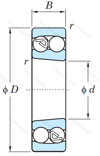 Конструкции этого типа, производящиеся фирмами FAG, KOYO, NSK, SKF, SNR, имеют два ряда шарикоподшипников, внешнюю выпуклую шину и внутреннюю обойму, в которой находится монтажное цилиндрическое отверстие. Воспринимают радиальные и осевые вектора приложения, включая двустороннюю нагрузку по оси (она не должна превышать 20% от лучевой).