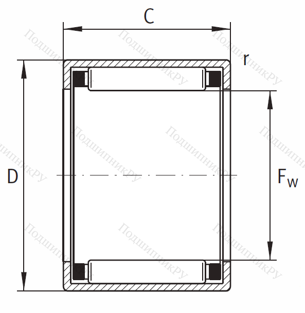 Игольчатый подшипник HK 1210 B имеет неразъемную конструкцию, в которую входят игольчатого вида тела качения и наружная штампованная шина. Как правило, является однорядным, без каналов для подачи смазочного материала.