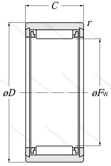 В конструкцию Игольчатый подшипник NK 10/12 T2 входит массивная наружная обойма, обработанная машинным методом, со специальными бортами-ограничителями, предназначенными для фиксации передвижения шины относительно тела качения. Из-за отсутствия внутреннего кольца движение происходит на валу. Иголки размещены внутри стального сепаратора.