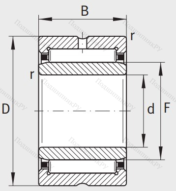 В конструкцию Игольчатый подшипник NKIS 40 входит массивная наружная обойма, обработанная машинным методом, со специальными бортами-ограничителями, предназначенными для фиксации передвижения шины относительно тела качения. Из-за отсутствия внутреннего кольца движение происходит на валу. Иголки размещены внутри стального сепаратора.