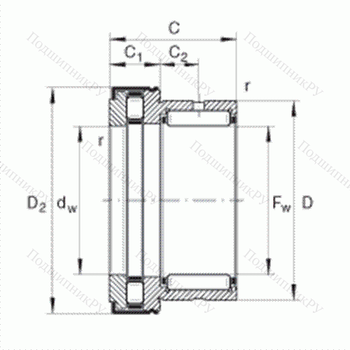Подшипник комбинированный с короткими цилиндрическими и игольчатыми роликами NKXR 45-Z
