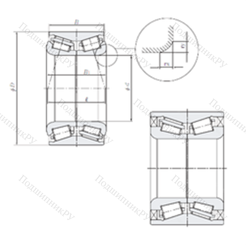 Подшипник роликовый радиально-упорный TU0802-4LLX/L588 у которого конструкционной особенностью являются ролики в форме конуса и разъемный корпус. Изделие также может быть укомплектовано наружным кольцом с упорным бортиком или большим углом, двухрядными или четырехрядными роликоподшипниками, утолщенной внешней шиной.