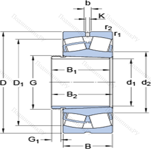 Сферические роликоподшипники на стяжной втулке 22230 CCK/W33 + AHX 3130 G у которого конструкционной особенностью являются ролики в форме конуса и разъемный корпус. Изделие также может быть укомплектовано наружным кольцом с упорным бортиком или большим углом, двухрядными или четырехрядными роликоподшипниками, утолщенной внешней шиной.