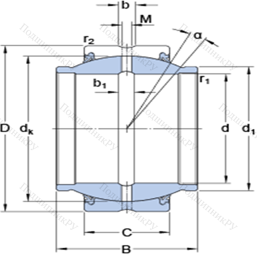 Радиальные сферические подшипники скольжения с контактными поверхностями сталь/сталь, требующие техобслуживания GEM 35 ES-2RS