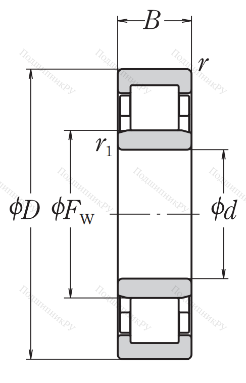 Роликовый цилиндрический подшипник NU 312 ET C3, это разновидность однорядного роликоподшипника в метрическом исполнении.