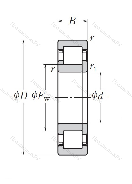 Роликовый цилиндрический подшипник NUP 309 EW C3 относится к группе однорядных цилиндрических роликоподшипников. Конструктивно состоит из: