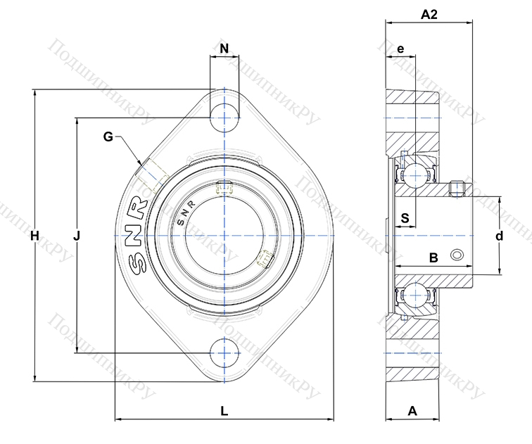 Фланцевая конструкция, готовая к монтажу и состоящая из стойкого к износу чугунного корпуса FD-типа овальной формы с парой отверстий, предназначенных для ввинчивания болтов. Устанавливается на вертикальные поверхности опор. Посадочное гнездо также выполнено в виде овала.