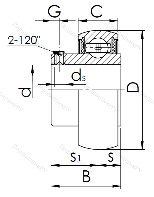 Радиальное шариковое однорядное подшипниковое тело, обладающее поверхностью сферической формы, которое может устанавливаться совместно с корпусами типов UCP, UCT, UCF, UCPA, UCFL. Внутренняя шина может иметь различную форму в зависимости от варианта установки (наиболее распространенными видами крепежа являются эксцентрики, стопорные винты и втулка для закрепления). Корпус оснащен посадочным сферическим отверстием и фланцем.