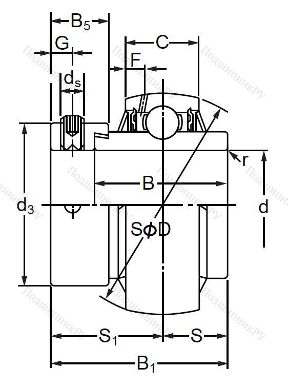 Самоустанавливающееся радиальное однорядное подшипниковое тело, компенсирующее перекос при установке на вал и обладающее широкой внутренней обоймой. Может крепиться с помощью винтов, специального эксцентрикового кольца, закрепляющей втулки.