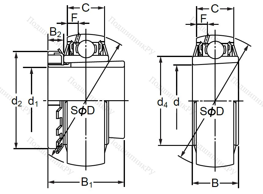 Внешняя обойма устройства – сферическая, что позволяет без проблем компенсировать перекос вала, возникающий в процессе монтажа. В отличие от иных моделей, обладает внутренней посадочной поверхностью в форме конуса (1:12), при помощи которой крепится к валу. Эксплуатируется совместно с втулками Н-типа.