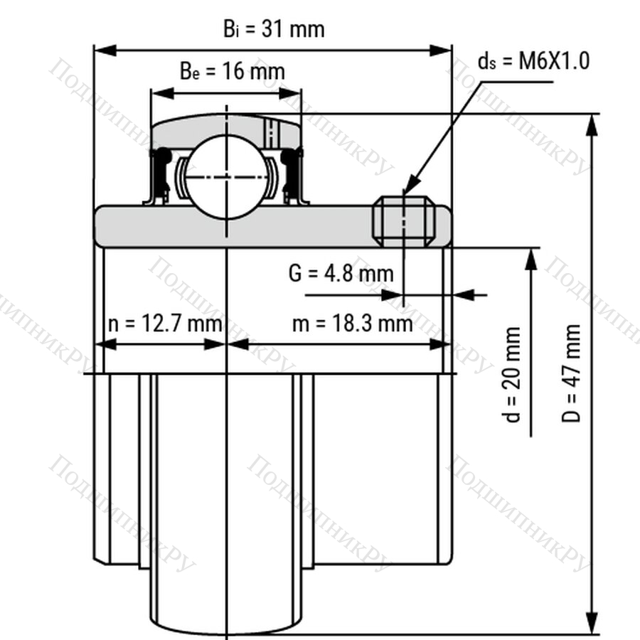 Подшипник из нержавеющей стали SS-UC204 может быть легко прикреплен к валу с помощью резьбовых штифтов или вставлена в корпус. Он подходит для радиальных нагрузок и устойчив к коррозии. Основные размеры согласно DIN 626-1.