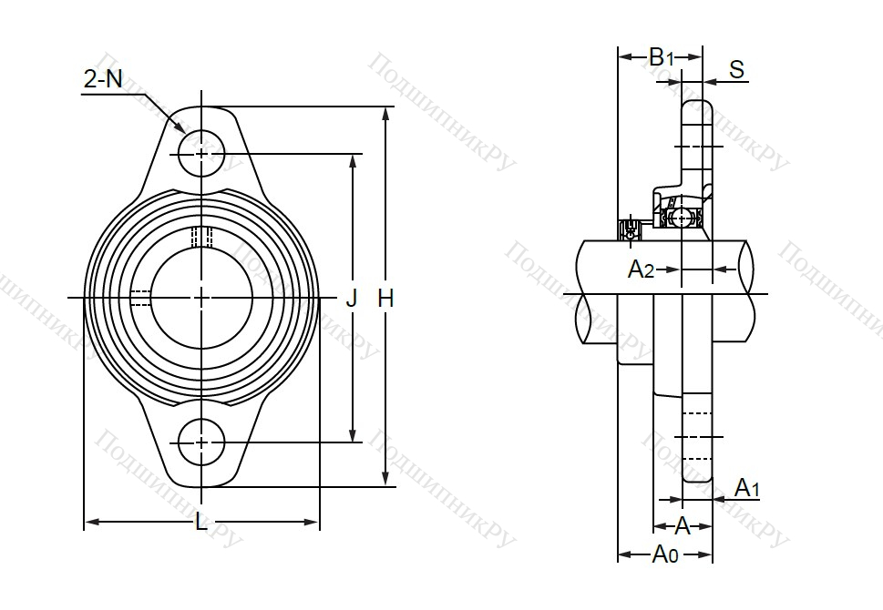 Ромбовидный корпус устройства предназначен для установки с использованием пары болтов в ограниченных пространствах. В зависимости от конкретной конструкции, может оснащаться внутренней обоймой со специальной закрепительной втулкой или стопорным винтом. Корпус изготавливается из стали, чугуна или иных материалов.