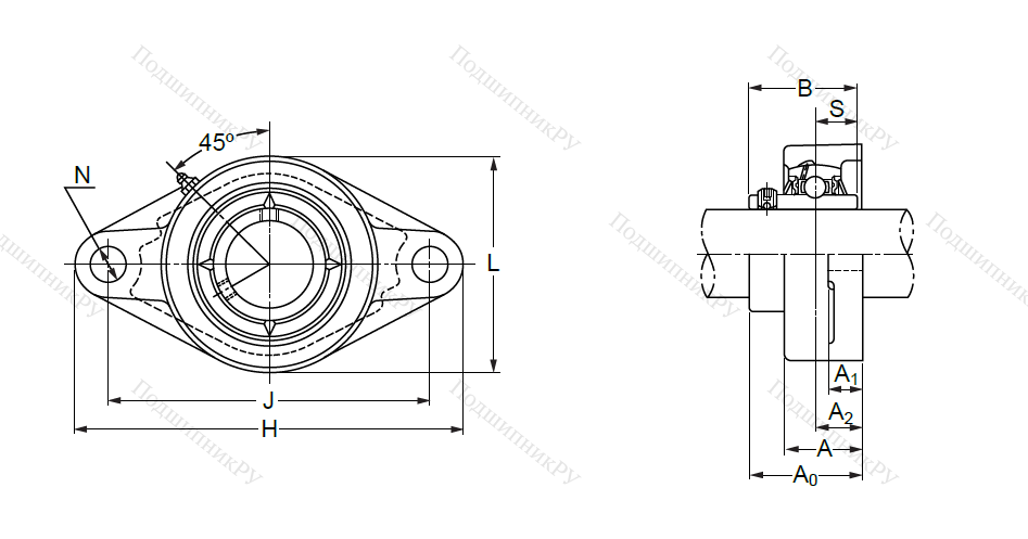 Ромбовидный корпус устройства предназначен для установки с использованием пары болтов в ограниченных пространствах. В зависимости от конкретной конструкции, может оснащаться внутренней обоймой со специальной закрепительной втулкой или стопорным винтом. Корпус изготавливается из стали, чугуна или иных материалов.