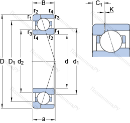 | Номинальная динамическая грузоподъёмность | C | 9.75 | kN | |