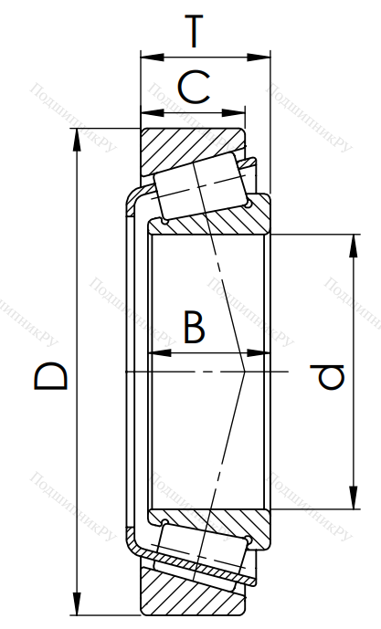 Строение данного типа детали состоит из сепаратора, роликов, а также двух колец, располагающихся снаружи и внутри. Отличительной чертой механизма является конусовидная форма роликов, удерживаемых ободом кольца, благодаря чему они могут одновременно воспринимать сочетание осевых и радиальных нагрузок.