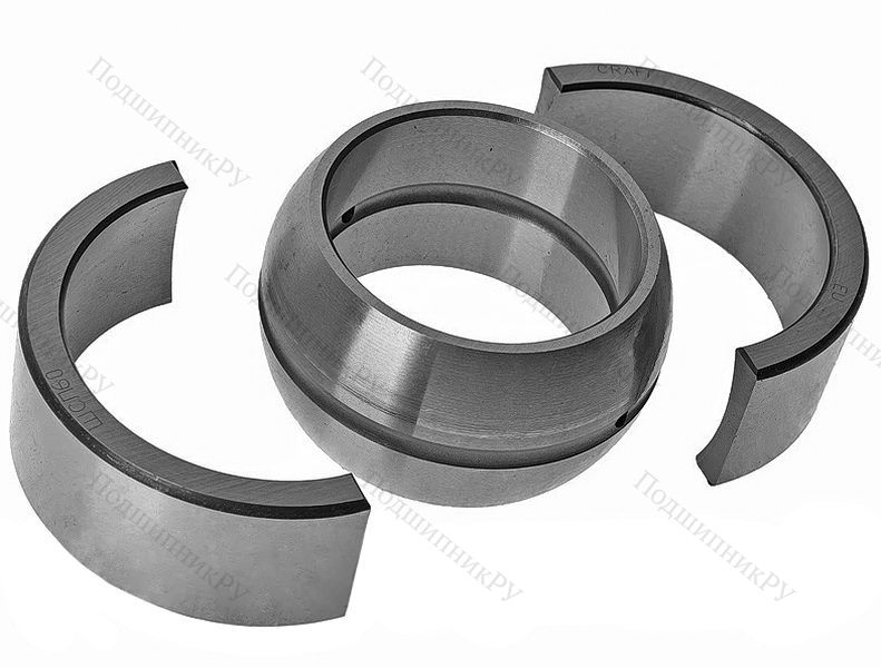 Конструкция изделия состоит из двух шин сферической формы. Наружное кольцо имеет двухразломное строение. Парой скольжения выступает сталь-сталь. Устройство передает комбинированные, радиальные или осевые нагрузки.